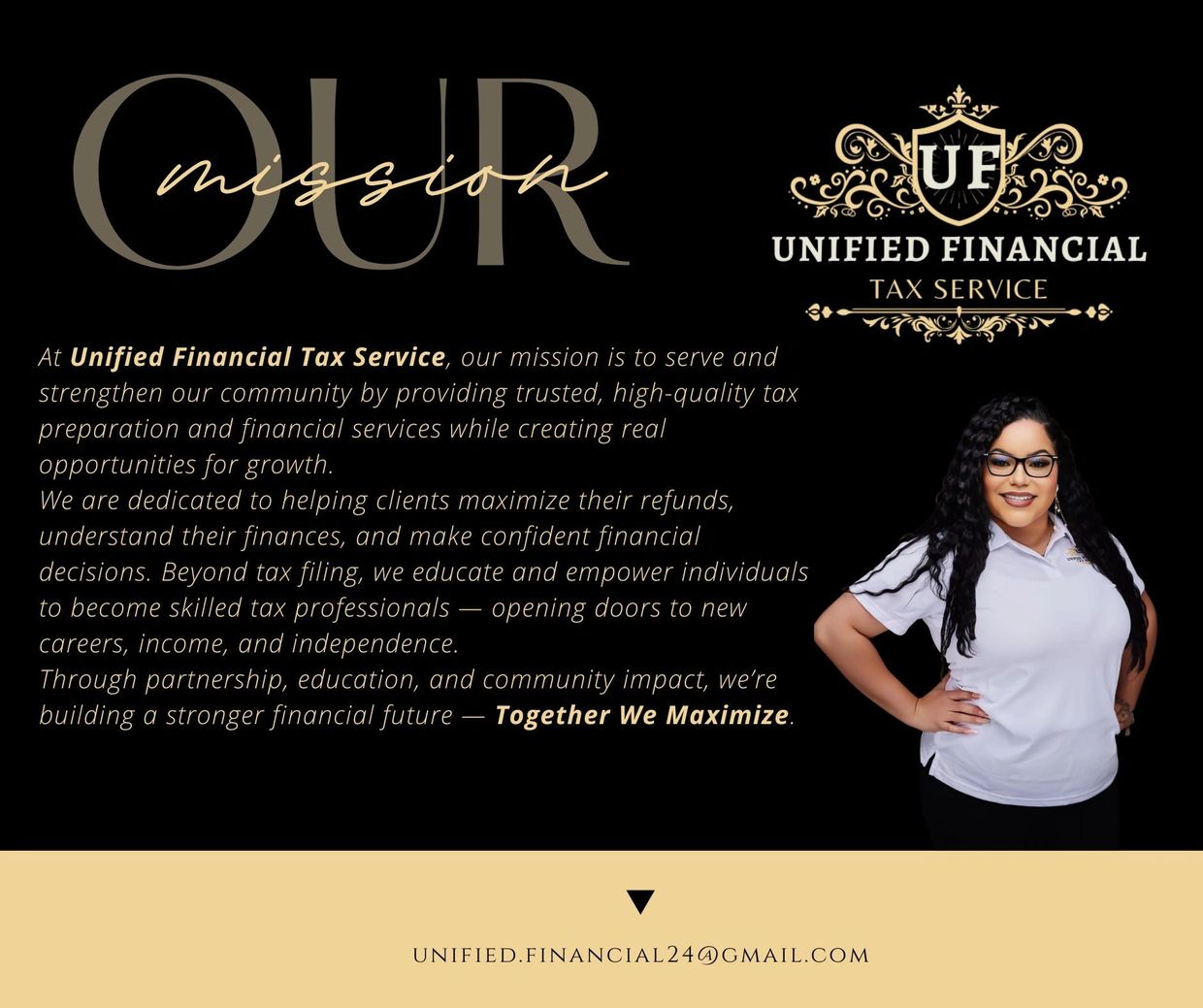 Born and raised in the heart of Beaumont, Texas — the Avenues, Julia Salazar’s story is rooted in resilience, hustle, and community. With a professional background in management, the medical field, and quality assurance, Julia learned early the value of structure, integrity, and excellence. What started as a one-woman tax operation quickly turned into something much bigger when she discovered her true passion: helping people win financially and opening doors for others to enter the tax industry. That vision led to the birth of Unified Financial Tax Service LLC, which has now trained over 100+ tax preparers and proudly supports 40 active tax professionals heading into the 2026 tax year. Julia’s journey as an ERO and CEO hasn’t been easy—but it’s been purpose-filled. Through every obstacle, she remained committed to mentorship, leadership, and putting God first, believing that with faith, discipline, and obedience, the sky truly isn’t the limit. Known for her compassionate heart and relentless work ethic, Julia shows up every day ready to build, teach, and pour into others. She’s a hands-on leader, a strategic thinker, and a woman who believes success means nothing if you don’t bring others with you. Driven by faith, fueled by passion, and grounded in love for God, Julia Salazar is proof that you can be powerful and kind—graceful and unstoppable.